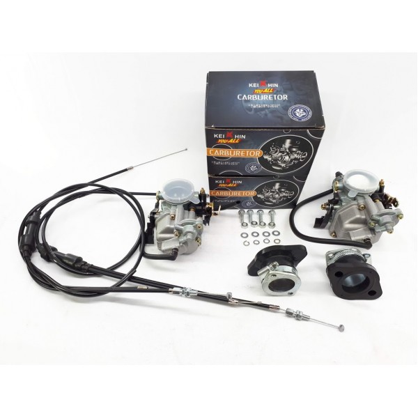 Комплект включает в себя 2 карбюратора PZ30 с ускорительным насосом ручным дросселем